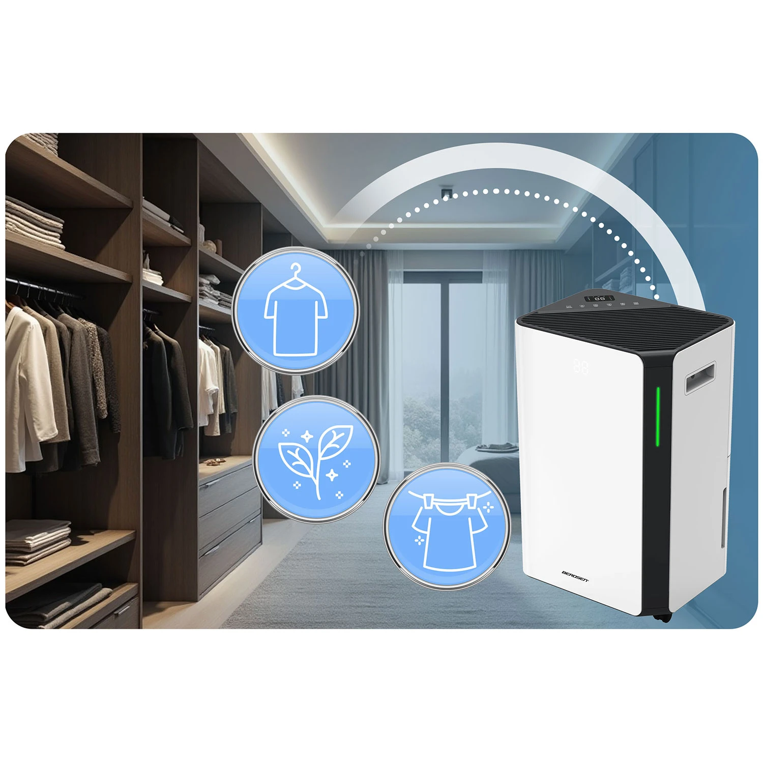 Berdsen BD-532 niiskusekoguja teeb niiskuse kontrolli lihtsaks ka siis, kui sa pole samas ruumis. WiFi ja äpijuhtimisega saad seadet mugavalt jälgida ja seadistada telefonist – olgu see kodus, kontoris, keldris või garaažis.