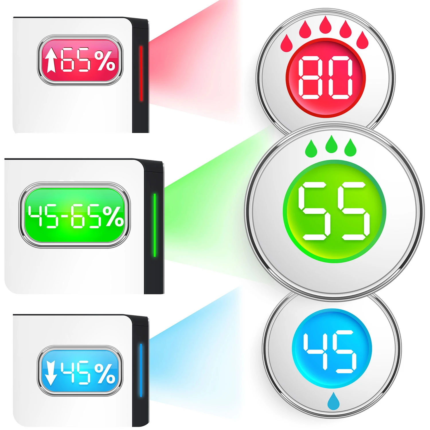 Sinine – niiskus on madalam (ruum on kuivem)