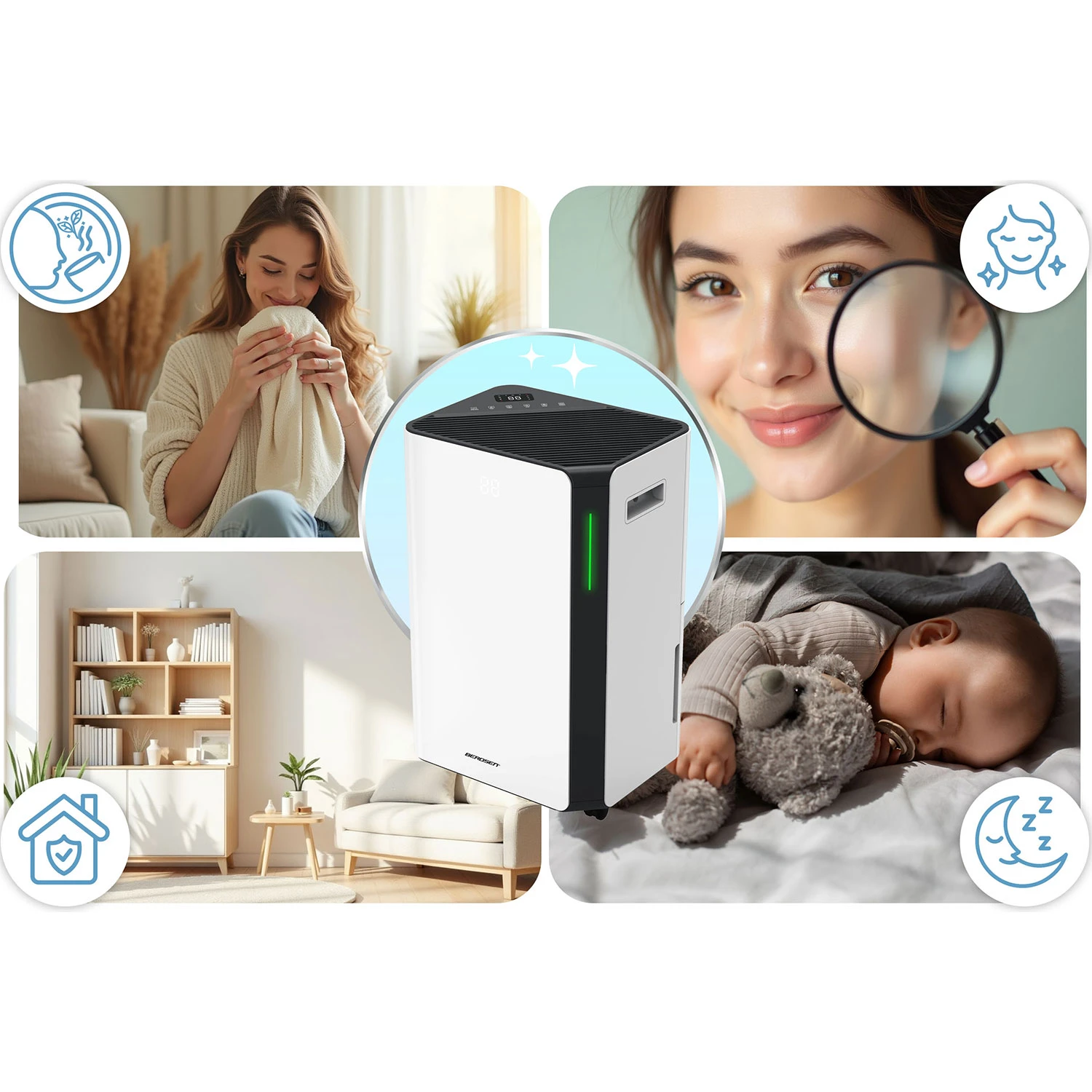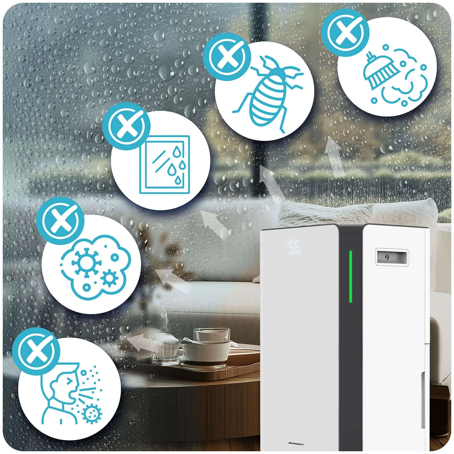 Liigne niiskus ei ole ainult “ebamugav tunne” – see loob ideaalsed tingimused probleemidele, mis hakkavad lõpuks mõjutama nii kodu seisukorda kui ka enesetunnet. Berdsen BD-532 niiskusekoguja aitab õhuniiskuse viia kontrolli alla ja seeläbi vähendada tüüpilisi niiskusest tekkivaid muresid: